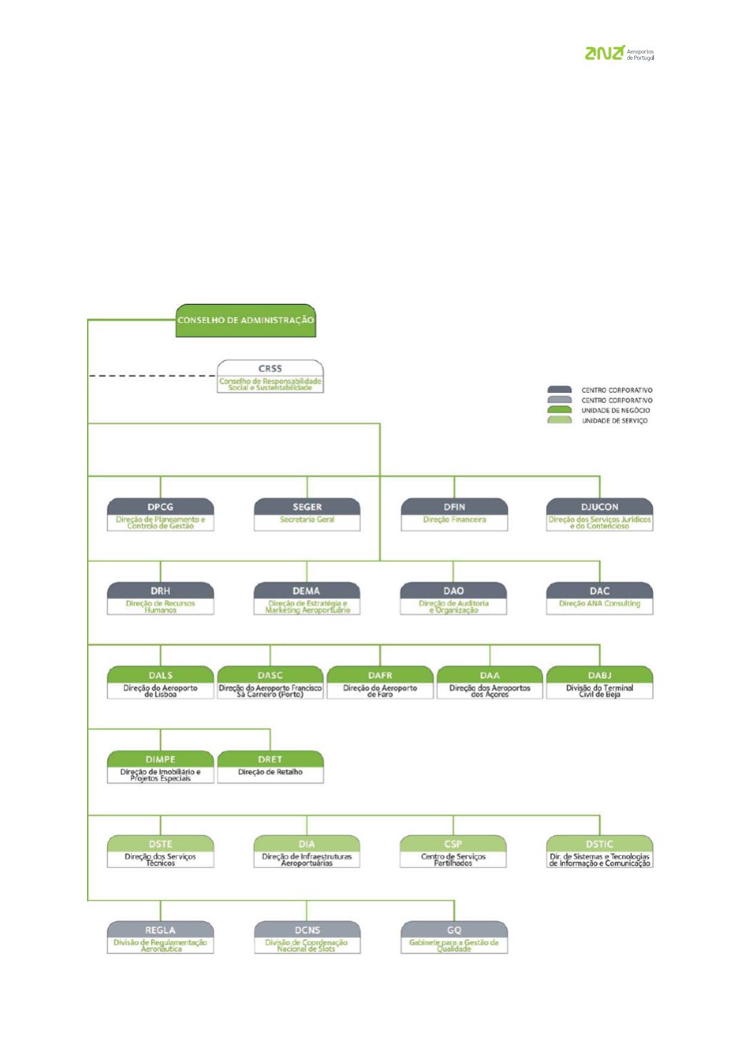 A estrutura organizacional da ANA, S.A. compreende